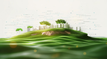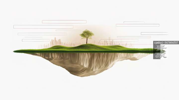 图片标题: 悬浮岛屿与和谐城市共存的绿色未来