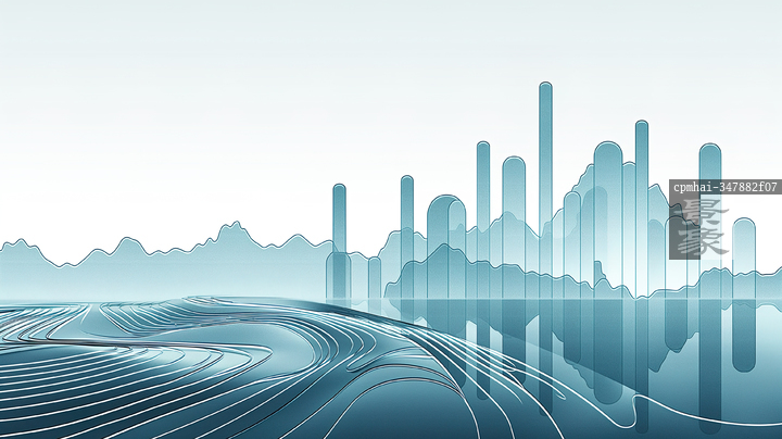图片标题: 以极简风格呈现的青色山脉轮廓,融合现代与传统的中国山水画效果