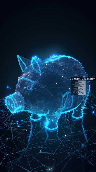 图片标题: 发光的存钱罐图标展示科技与财富管理的融合,呈现出未来的金融理念