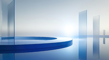 图片标题: 扭曲倾斜的极简风景围绕着水域,营造出梦幻般的氛围和宁静感