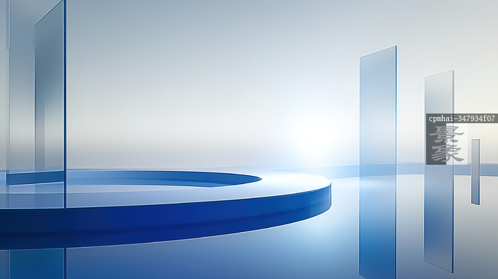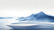 图片标题: 扭曲倾斜的极简风景围绕着水域,营造出梦幻般的氛围和宁静感