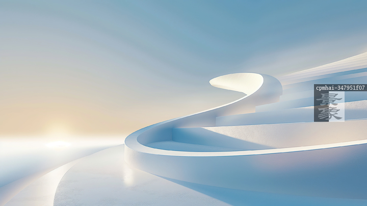 图片标题: 现代建筑中的蓝色瀑布与白色楼梯