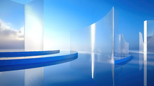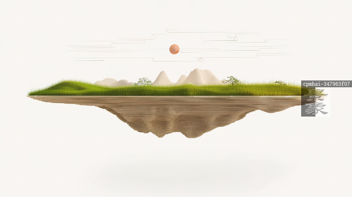 图片标题: 悬浮岛屿与和谐城市共存的绿色未来