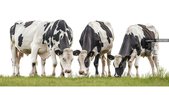 图片标题: 奶牛在悠闲地吃草,展现牧场生活