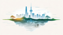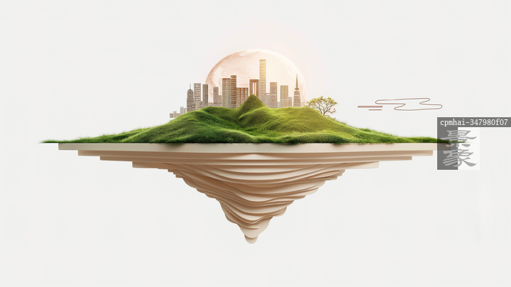 图片标题: 悬浮岛屿与和谐城市共存的绿色未来
