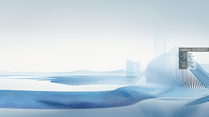 图片标题: 以极简风格呈现的青色山脉轮廓,融合现代与传统的中国山水画效果