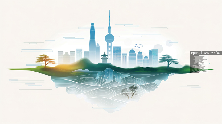 图片标题: 城市地标建筑的简约插画