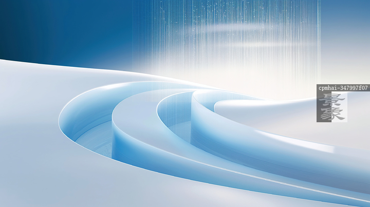 图片标题: 现代建筑中的蓝色瀑布与白色楼梯
