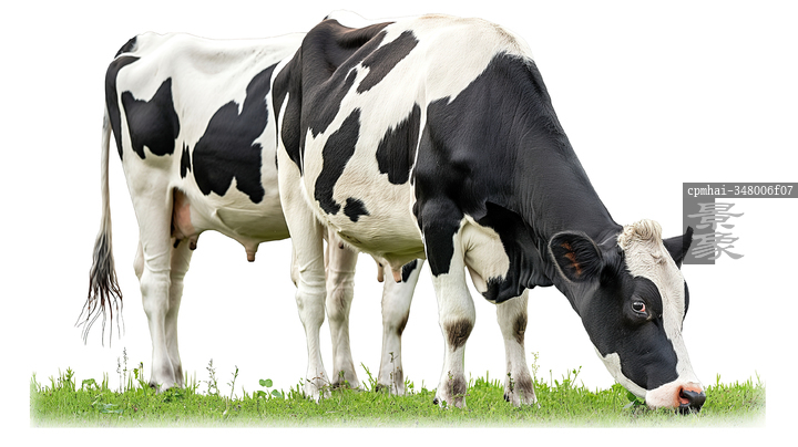 图片标题: 奶牛在悠闲地吃草,展现牧场生活