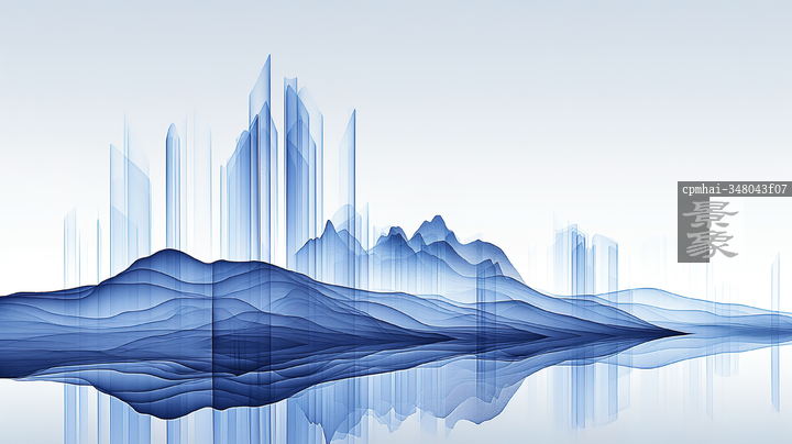 图片标题:     以极简风格呈现的青色山脉轮廓,融合现代与传统的中国山水画效果