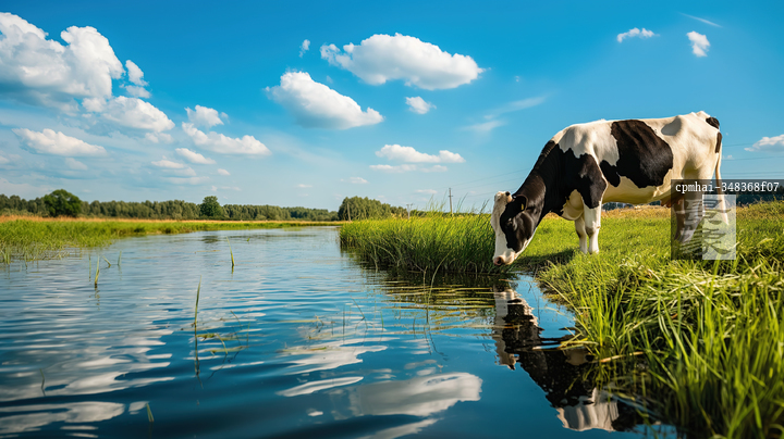 图片标题: 奶牛在悠闲地吃草,展现牧场生活