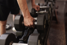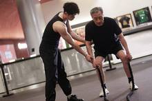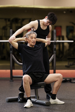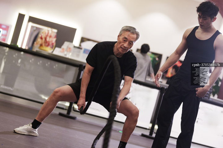 图片标题: 一位老年男性在健身房上私教课