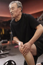 图片标题: 一位老年男性在健身房上私教课