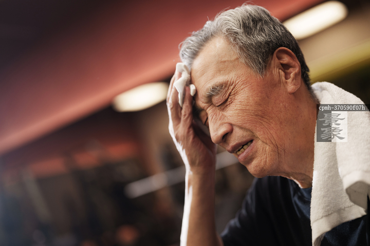 图片标题:     在健身房里锻炼的一位老年人身体不舒服