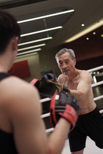 图片标题: 一位老年男性练习拳击
