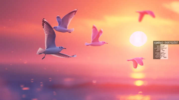 图片标题: 日落海鸟