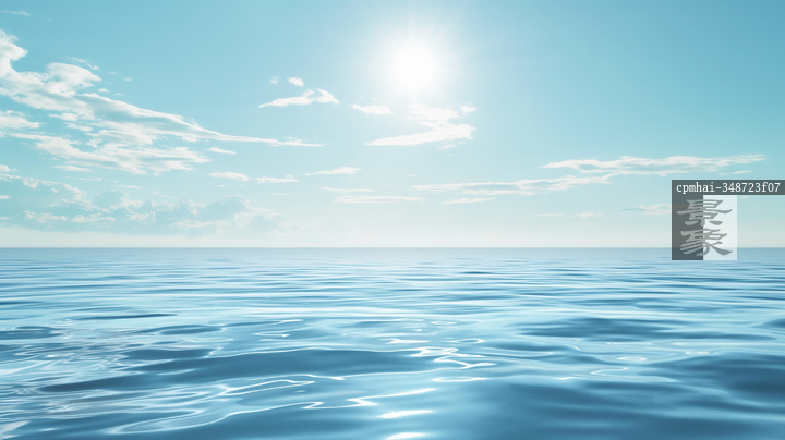 图片标题:     平静蓝色背景下的海洋日出景象,带来宁静祥和的氛围