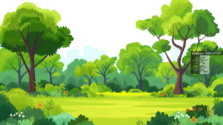 图片标题: 绿色植被中充满生机的森林景观展现自然之美与色彩