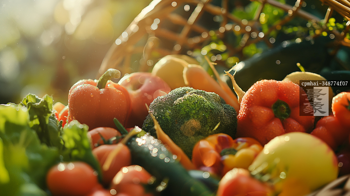 图片标题: 新鲜蔬菜的丰收景象