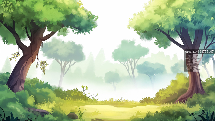 图片标题: 绿色植被中充满生机的森林景观展现自然之美与色彩