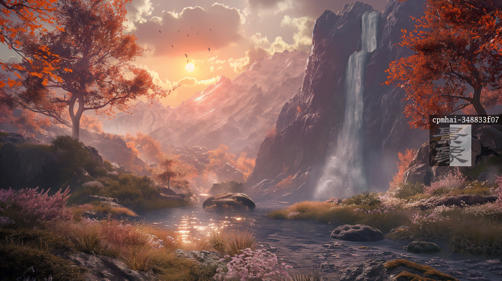 图片标题: 秋日山谷瀑布