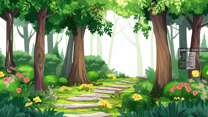 图片标题: 绿色植被中充满生机的森林景观展现自然之美与色彩