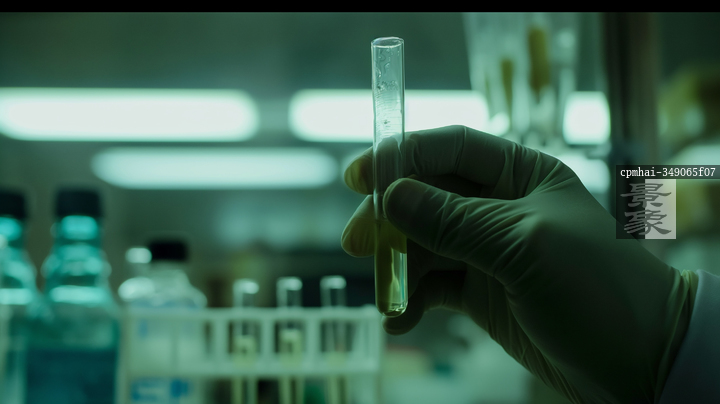 图片标题: 实验室中科学家进行化学实验,手持试管观察液体反应