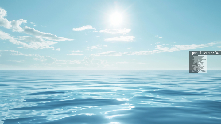 图片标题: 平静蓝色背景下的海洋日出景象,带来宁静祥和的氛围