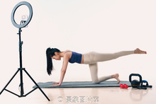 图片标题: 年轻的亚洲女性在做在线运动健身教学