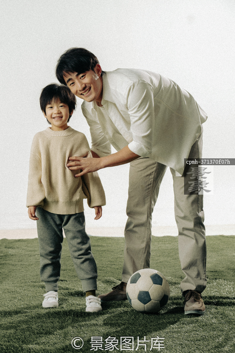 图片标题: 父亲陪孩子玩足球