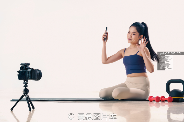 图片标题:     年轻的亚洲女性在做在线运动健身教学