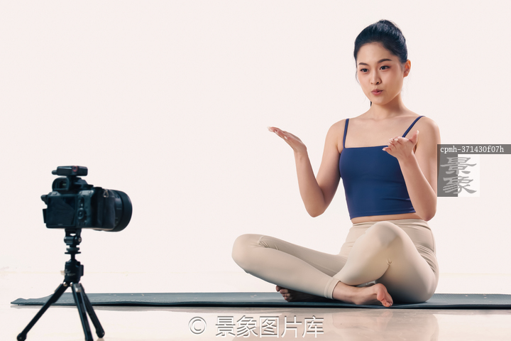 图片标题: 年轻的亚洲女性在做在线运动健身教学