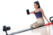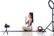 图片标题: 年轻的亚洲女性在做在线运动健身教学