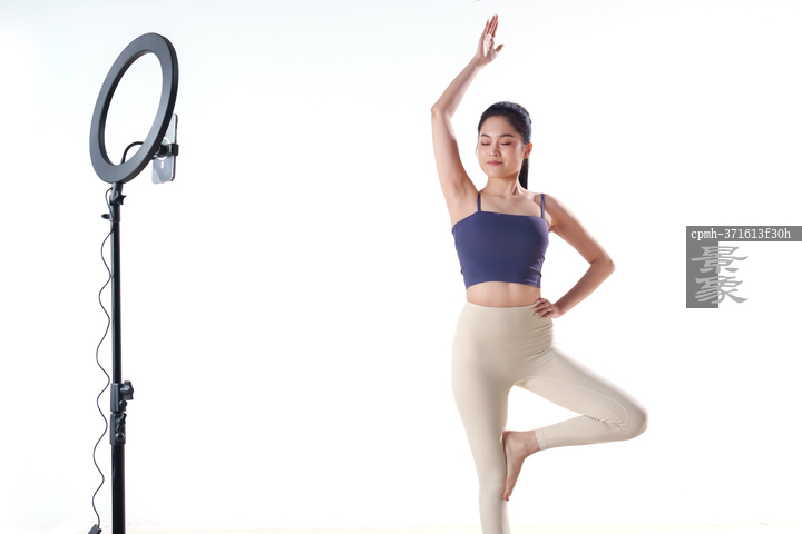 图片标题:     年轻的亚洲女性在做在线运动健身教学