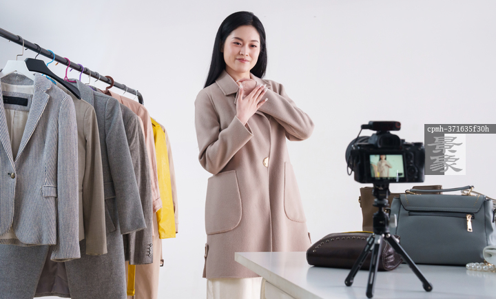 图片标题:     年轻女子直播卖衣服