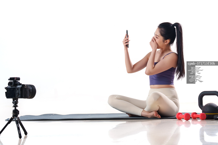 图片标题:     年轻的亚洲女性在做在线运动健身教学