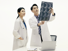 图片标题: 医务人员交谈工作沟通
