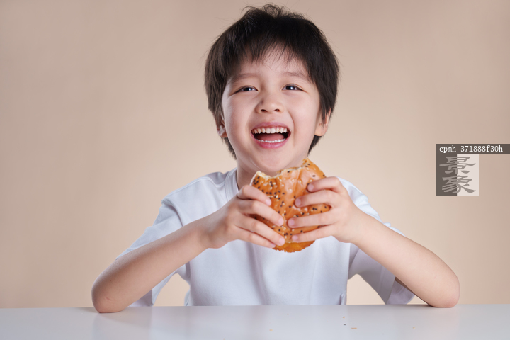 图片标题: 小男孩吃汉堡
