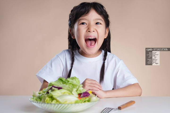 图片标题: 小女孩吃蔬菜