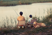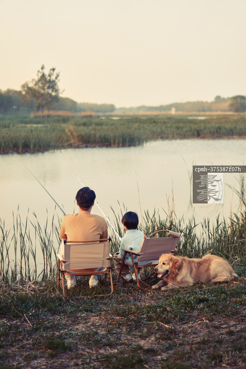 图片标题: 父子田野湖边垂钓郊游