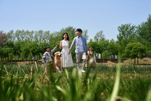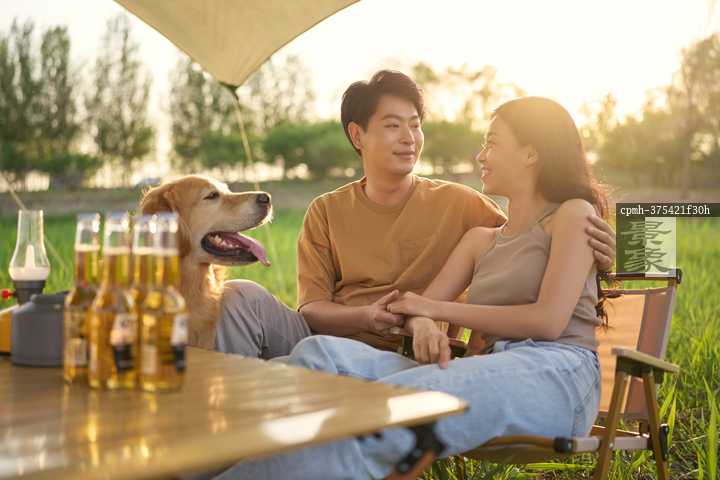图片标题: 情侣与宠物郊游