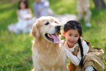 图片标题: 夕阳下父女与狗