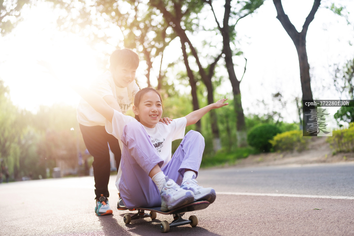 图片标题:     快乐的孩子们在公园玩滑板
