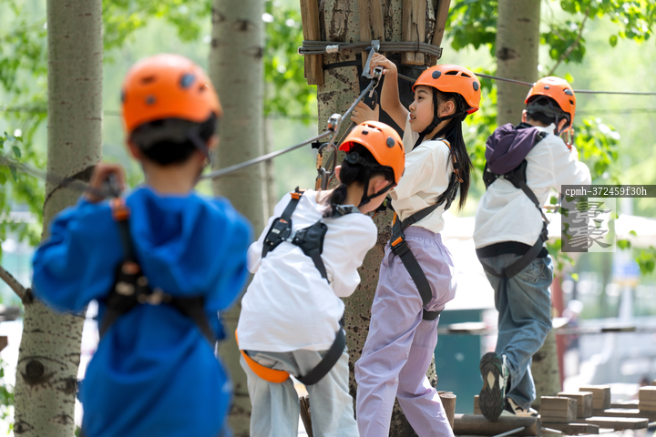 图片标题: 孩子们在公园进行户外拓展活动
