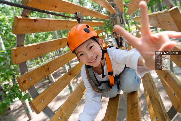 图片标题: 孩子们在公园进行户外拓展活动