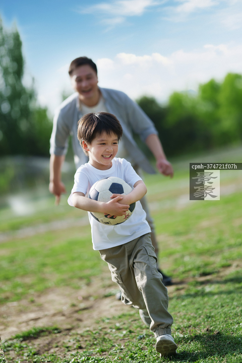 图片标题: 父子踢足球