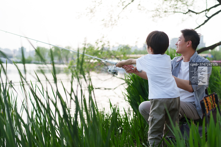 图片标题: 父子湖边垂钓
