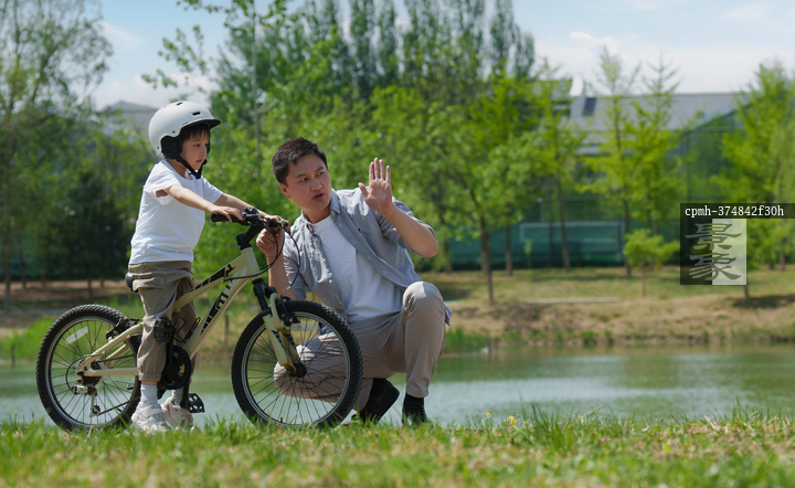 图片标题: 父亲陪孩子骑车