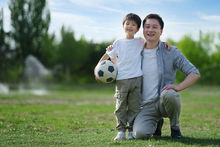 图片标题: 父子合影欢庆瞬间