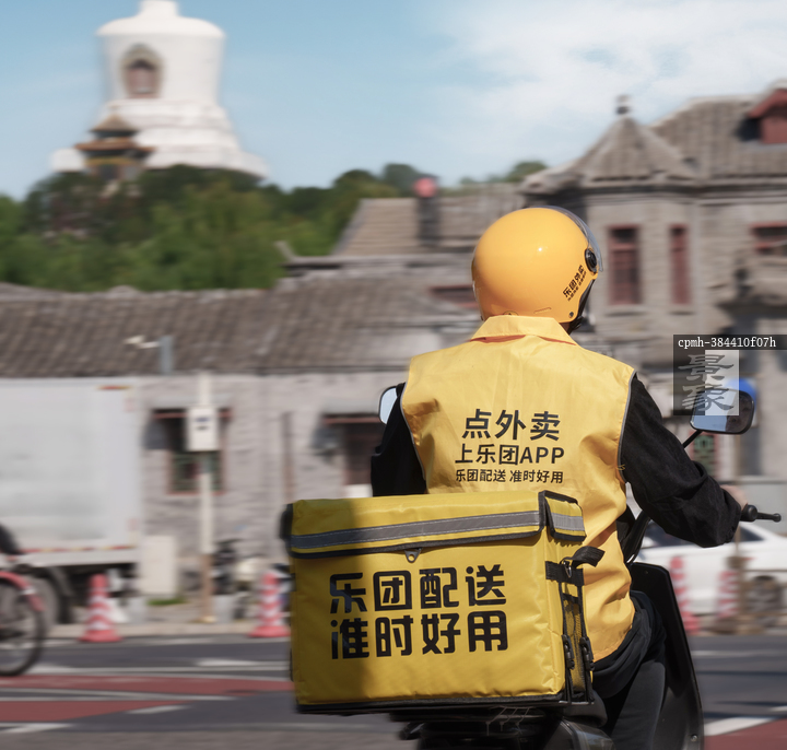 图片标题: 中年男子送外卖配送